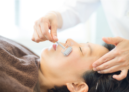 お身体の調整後お顔は「接触鍼」「鍉鍼(ていしん)」といった刺さない手法でツボを刺激していき、お肌本来の力を引き出します。痛みを感じやすい方も安心して受けていただけます。