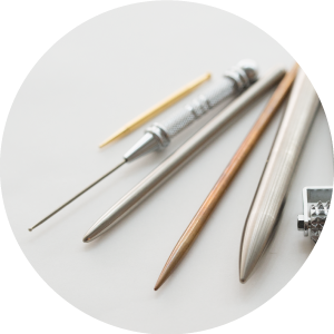 鍼…皮膚への刺激も少ない髪の毛くらいの細い鍼を使用しています。痛みのないやさしい鍼灸治療を心がけています。